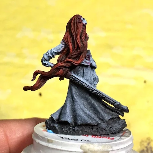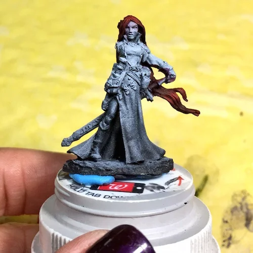 I've also started on one of Reaper's 25th anniversary limited edition miniatures, Lysette, inspired by Erza Scarlet from the anime Fairy Tail. I haven't painted fantasy-red hair before and I figured she'd be perfect for it! I'll use Erza's Robe of Yūen (悠遠の衣 Yūen no Koromo) armor as a guide for my color scheme with purples and pinks. The other arm of the miniature (not yet attached) holds a magic wielder's staff which is consistent with Erza's armor as well :)