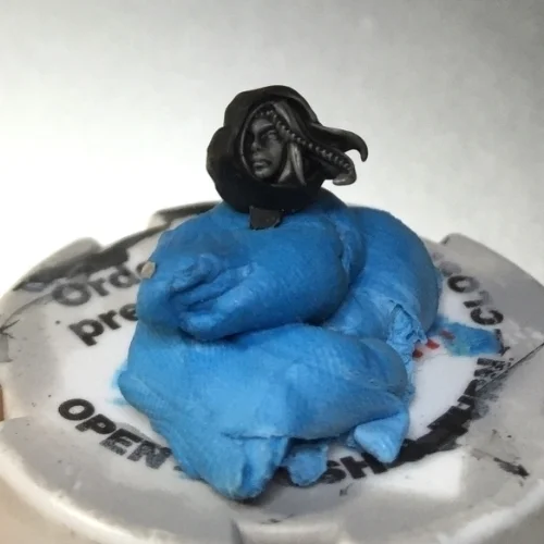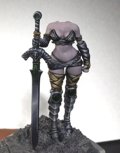 I won't go into any of it since it's still pretty fresh and I'm really upset about the whole thing. While I may have survived the first wave, who knows what's in store for the "survivors". All I know is, it ain't gonna be pretty and my head's not off the chopping block yet. Speaking of disembodied heads, I PAINTED STUFF! (sorry, it was the best segue I could think of). I'm making slow progress on the Kingdom Death Twilight Knight-- this has to be the smallest face I've ever painted!