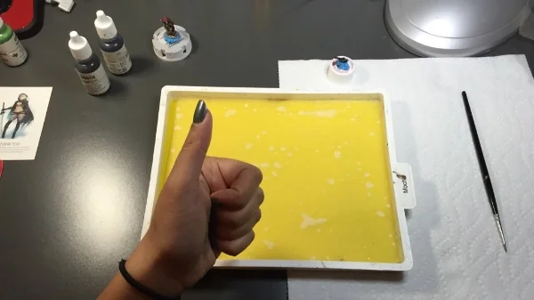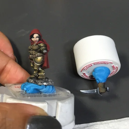 We're so close to being done with Bailey Silverbell #2. She was the second mini I ever painted, and I'm looking forward to seeing her side-by-side with her original counterpart. She'd 90% done and it's killing me that she's still sitting there collecting dust. I still need to work some finishing touches on her cloak, and hair, but for now, it's time to attach the dagger. I have to give myself a pep talk before attachments like this-- so much can go wrong like glue spilling over on finished paint sections. (deep breaths) Don't screw this up! I've got this...